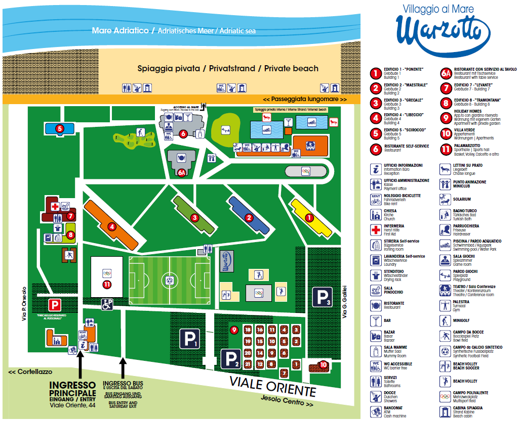 DAY CAMPER (6 – 16 years old): In this case, the camper does not stay overnight in the hotel, which is frequently the case of somebody residing in the town where the MJC Camp is held. The camper arrives at the hotel every morning around 8:45am (except on Sunday). He then leaves for the soccer field with the rest of the group and returns to the hotel after showering after the second training held in the afternoon (18:30 (6:30pm)) or evening (21:30 (9:30pm)) (except on Saturday last day of camp) (Lignano Session 1 August 3 – 9 will end in the evening after closing ceremony). Dinner is not included so if there is a night training session (or you want your child to participate at evening activities), you will need to pick up your child around 18:30 (6:30pm) and bring him back later for the night training session (or activities if you want him to participate). All details will be mentioned in the camp information email you will receive a few weeks before camp starts.